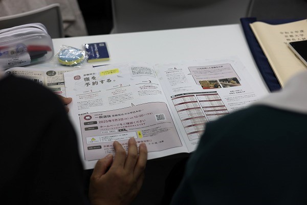 受験期間中は宿泊先や移動手段の確保など、心配事がつきません。京大生協では、地方から京都に来る受験生のために入試期間中に利用できるホテル情報を発信し、宿泊先探しの負担を軽減しています。さらに試験当日には、ホテルからキャンパスへの連絡バスを運行。道に迷う心配がなく、安心して会場に向かうことができるとあって、とても人気のようです!