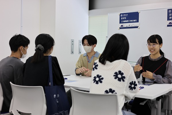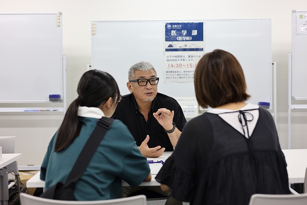 そして、高校生に特に人気だったのが、在学生による学生相談コーナー。「学校の問題集と自分で購入した受験対策用の問題集をいつ切り替えるべきか?」、「京大受験に向けてのモチベーション維持方法は?」など、高校生らしい率直で具体的な質問が飛び交います。在学生が質問に答え、和やかでありながらも有意義な時間が流れているのが印象的でした。