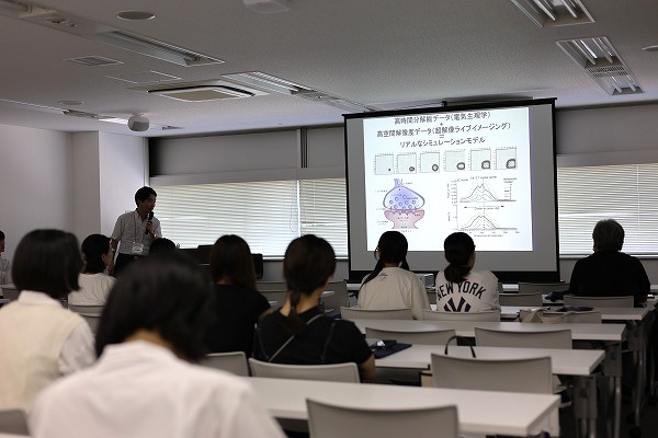 まず、参加したのは、医学部人間健康科学科の講義。学科の概要や入試方法の説明からスタート。そして、待ちに待った講義のテーマは「脳細胞や仕組み」。 難しそうな内容に少し面食らってしまいました(笑)。参加者たちも最初は硬い表情を見せていましたが、講義が進むにつれて、目が生き生きと輝きます。