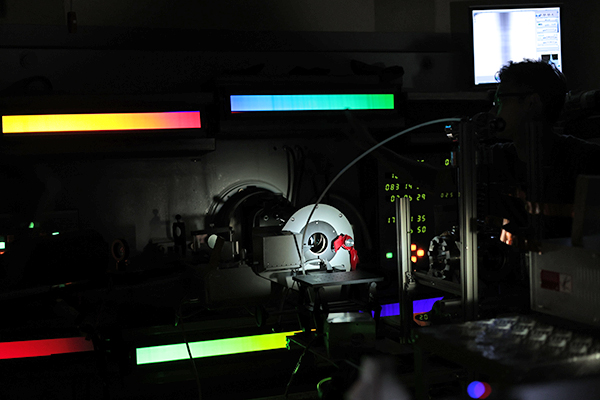 待ちに待った施設見学! 私たちの班が最初に向かったのは、65cm屈折望遠鏡施設です。施設までの廊下を通り、ドアを開けて中に入ると、「望遠鏡」という言葉のイメージを覆されるような景色が……!